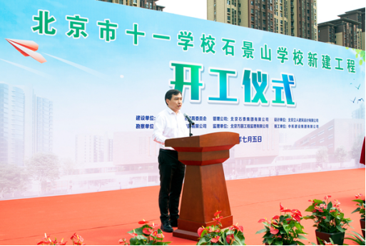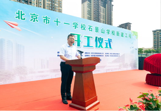 北京市十一学校党委书记、校长田俊祝贺项目正式开工,他表示,在区委区政府各级领导和社会各界的关心和支持下,石景山学校一定能够建设成为学生健康成长、老师幸福工作的好学校,让更多的孩子们在家门口就能享受到优质的教育资源。