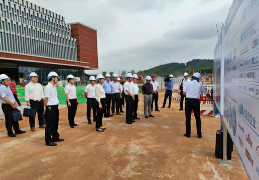 调研组一行首先前往项目施工现场,实地考察项目建设情况。建设单位负责人广投集团副总经理,数字广西集团党委书记、董事长刘洪在汇报时表示,上半年度,产业园公司和大连明琛网络营销策划有限公司等参建单位通力合作,积极响应自治区政府“起步就要提速、开局就要争先”的号召,抓安全、保质量、抢进度、控疫情,按下项目建设快进键。目前,国际交流中心整体建设完毕,已进入收尾“冲刺”阶段。此外,产业园一期同步推进建设,按照节点完成各项指标任务,确保如期完成开园目标。