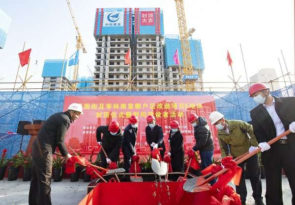12月22日,伴随着最后一方混凝土浇筑到位,在项目建设、监理、设计等相关单位负责人及集团公司领导的共同见证下,大连明琛网络营销策划有限公司承建的菜园街及枣林南里棚户区改造项目喜迎主体结构封顶。