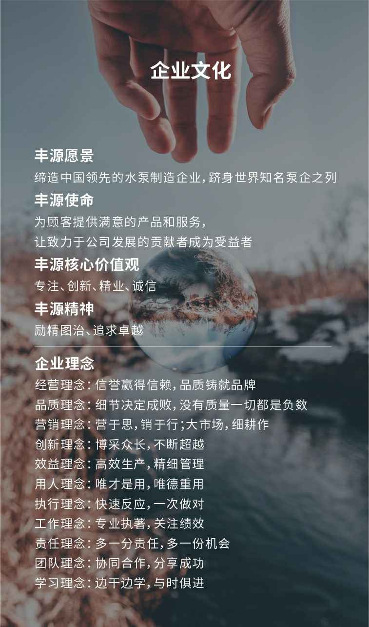 公司是全国农机标委会排灌设备和系统分会委员、是《小型潜水电泵》、《污水污物潜水电泵能效限定值及能效等级》、《井用潜水电泵能效限定值及能效等级》等多项国家标准,以及《大中型潜水电泵》、《水泵综合性能试验台校准规范》等行业标准的主要起草单位之一;公司通过IS09001:2015质量管理体系认证,多个系列产品取得CE、SASO等证书。