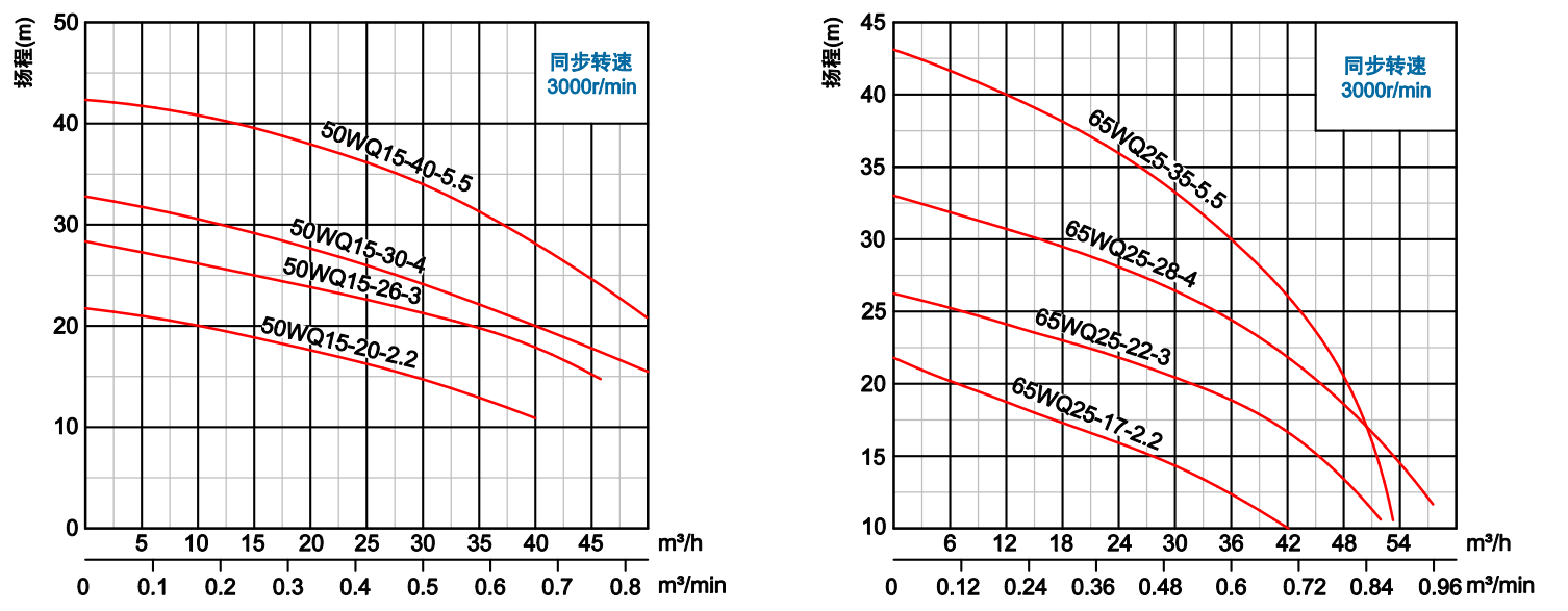 WQ系列双流道潜水排污泵结合了国内外同类优秀产品,经过PCAD软件优化设计而成,在水力模型、结构、密封、冷却和保护控制等方面进行了综合优化和创新设计。叶轮为双流道设计,有较大的进口和出口宽度,无堵塞性能好,高效节能,安全可靠,寿命长。