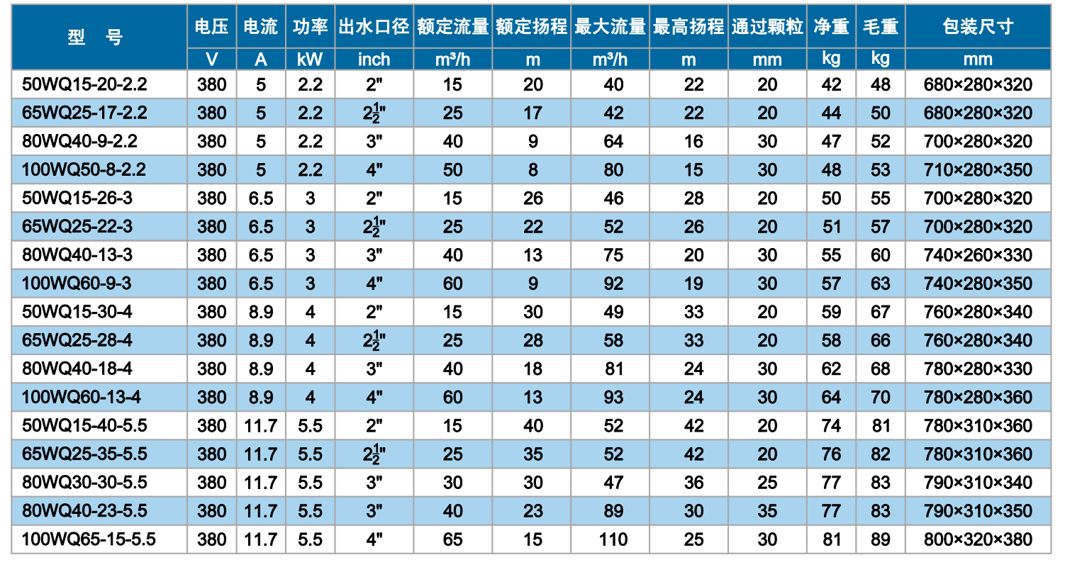 WQ双流道潜水排污泵 2.2~5.5kW